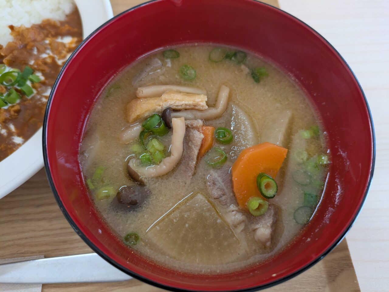優しいお出汁とお味噌が美味しい豚汁は、おかわり自由です。お店の方にお願いするとおかわりを持ってきてくれます。