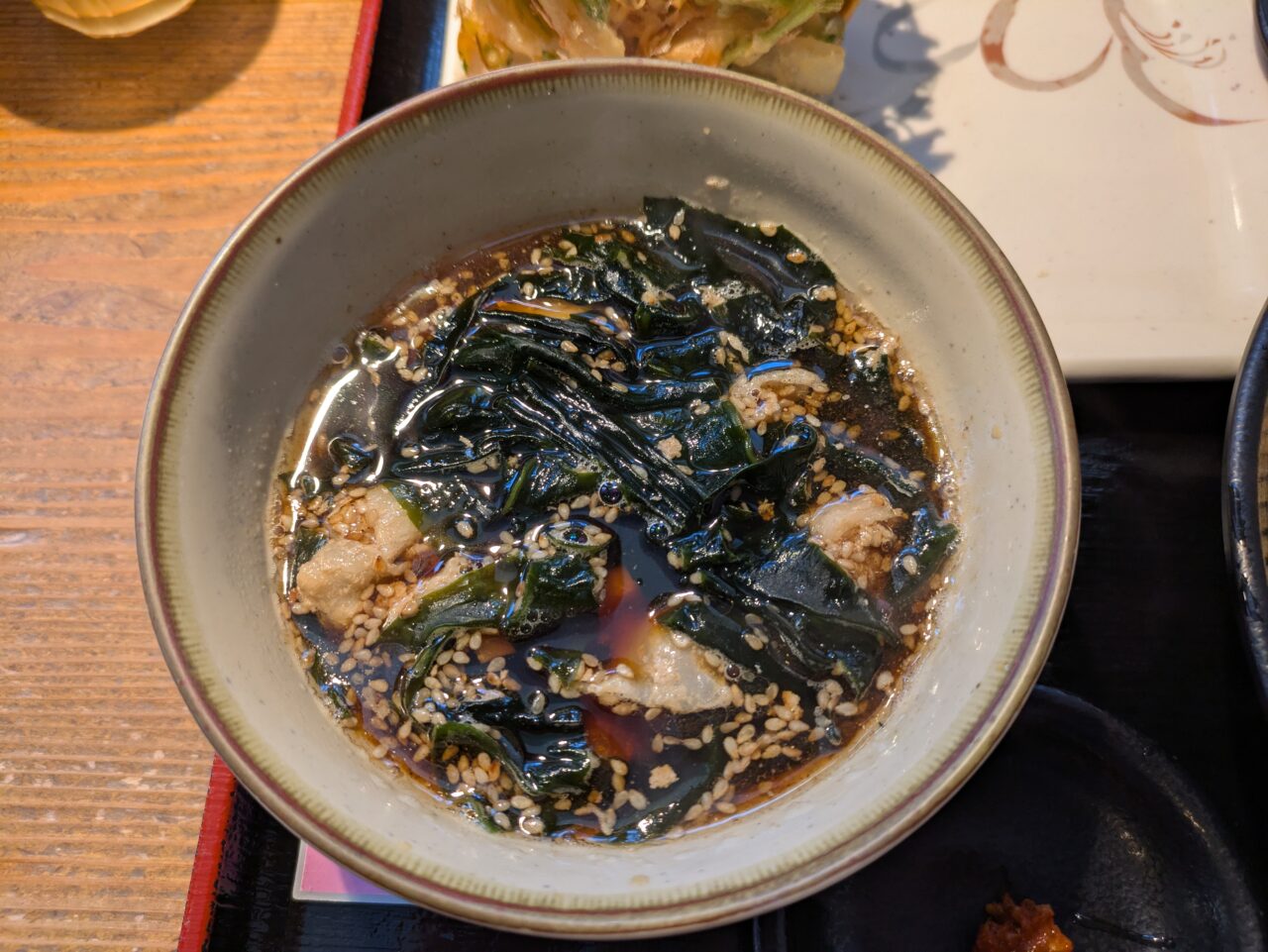 蕎麦は本格的でコシもあってとても美味しい! ゴマ油が効いた温かいつゆとたっぷりのお肉とワカメがそばによく絡んでとても美味しかったです。